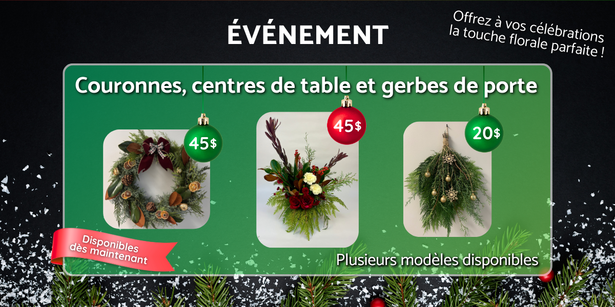 Voici l’ensemble des arrangements floraux disponibles pour le temps des fêtes.